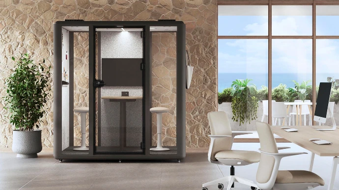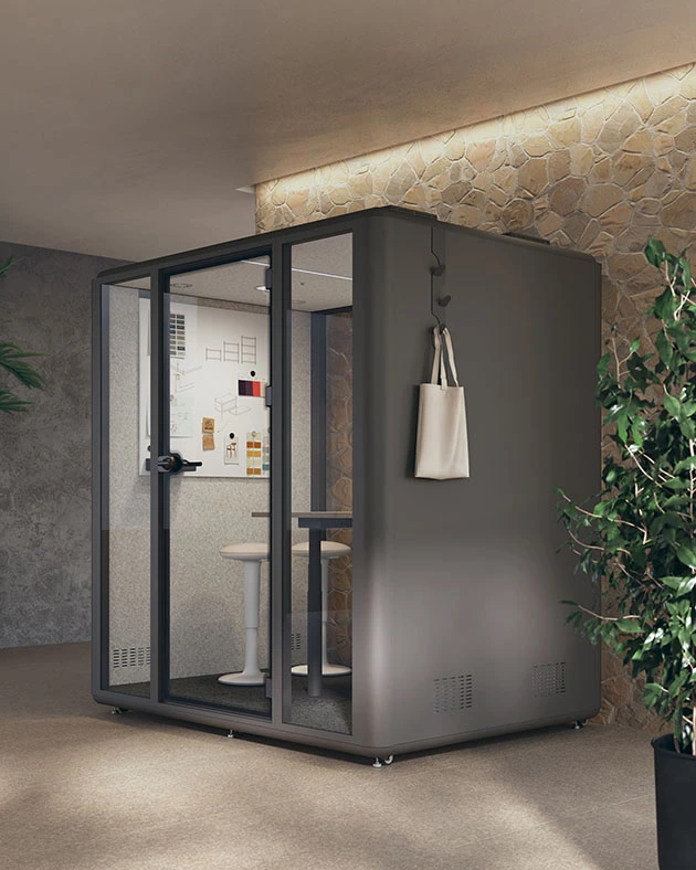 Elle combine isolation phonique de classe A, confort ergonomique, ventilation silencieuse, éclairage intégré et connectivité complète, pour faire de chaque moment de travail une expérience sereine et efficace.