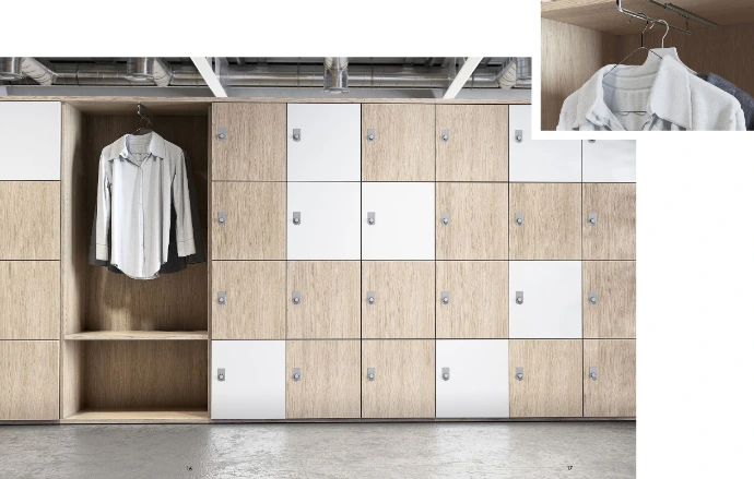 Vestiaires et zones de pause : ranger vêtements, sacs ou effets personnels en toute tranquillité.